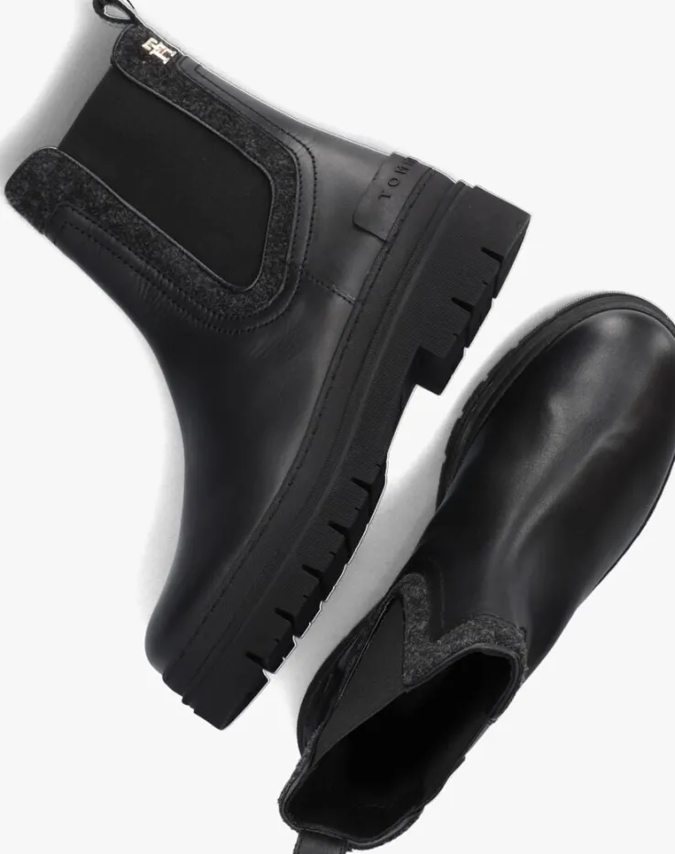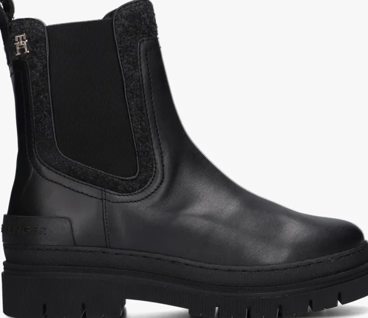 Stap stijlvol de dag door met de FEMININI FELT CHELSEA BOOTIE van TOMMY HILFIGER. Deze zwarte leren chelsea boots met chunky zool zijn perfect voor dames die op zoek zijn naar comfort en fashion. De elastische inzetten zorgen voor een trendy look en een gemakkelijke instap in combinatie met de aantreklus. Ook heeft dit model randen van textiel en een metaal logo aan de zijkant. De textiel voering zorgt voor extra comfort tijdens het dragen. Combineer deze must-have schoenen met een skinny jeans en een oversized trui voor een casual-chique look. Of draag ze onder een jurkje voor een edgy twist. Laat je creativiteit de vrije loop en rock deze boots op jouw eigen manier!