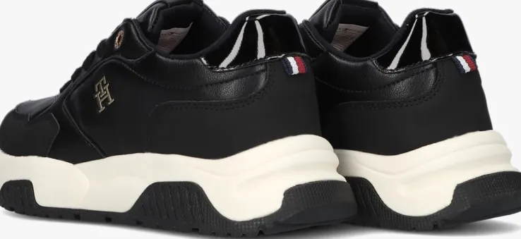 Stap in stijl met deze zwarte sneakers van TOMMY HILFIGER. De LOW CUT LACE-UP is perfect voor meisjes die op zoek zijn naar comfort en fashion in één. Met de overlays en chunky zool ben je helemaal on-trend. Opvallend zijn de perforaties op de neus, de lakleatherlook hielcap en de goudkleurige merkemblemen op de tong en zijkant. De rubberen zool zorgt voor een goede grip, terwijl het uitneembare voetbed zorgt voor extra gemak. Combineer deze lage sneakers met een stoere jeans en een casual T-shirt voor een trendy look. Of draag ze onder een jurkje voor een speelse twist.