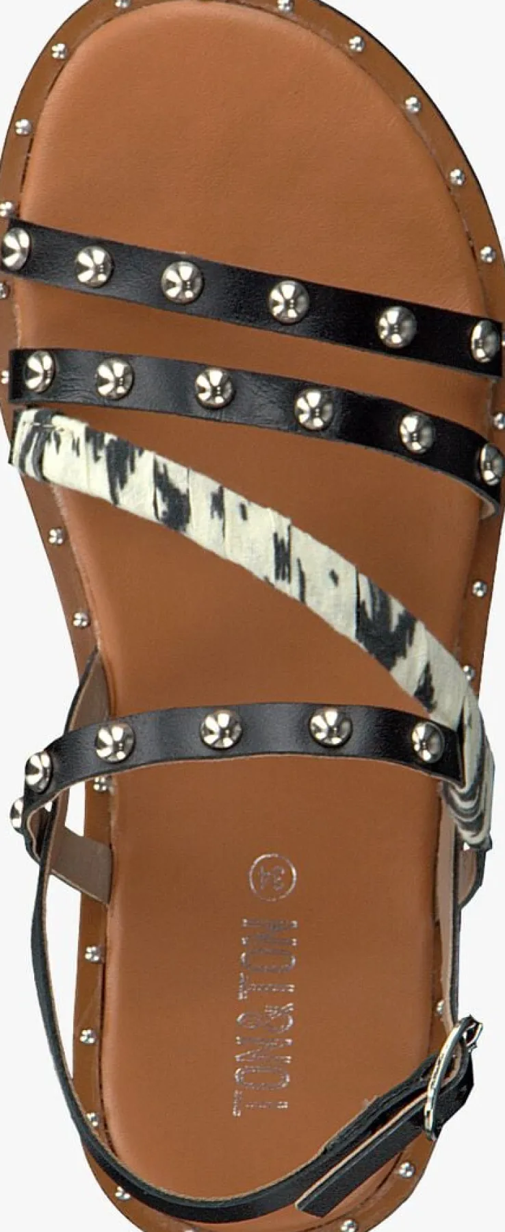 Geniet van de fijne zonnestralen op je huid, maak plezier en ga erop uit met deze leuke sandalen SH709van het merk TON & TON.Dit hippe, jonge en trendy merkzorgt ervoor dat opgroeiende kids stevige schoenen kunnen dragen welke gemaakt zijn van soepele materialen zodat zezorgeloos kunnen ravotten. De bandjes van deze sandaal zijn gemaakt van zwart leer en hebben opvallende bolstuds. De band over de wreef is voorzien vanbeige textiel,wat er niet alleen heel tof uitziet maar ook lekker zacht aanvoelt. Het bandje om de hiel heeft eengespje voor een aansluitende pasvorm. De voering is gemaakt van leer en heeft een lederenvoetbed met zilverkleurig merkopdruk en kleine bolstuds langs de zoolrand. De rubberen zoolheeft een gestructureerd profiel en zorgt voor goede grip en stabiliteit.