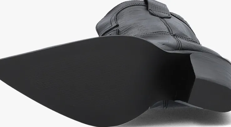 Deze opvallende halflange lange cowboylaars komt uit de schoenencollectie van het merk TORAL en is een ware eyecatcher! De laars is uitgevoerd in hoogwaardig zwart leer. Opvallende details zijn de twee aantreklussen boven aan de schacht, de V-inkeping aan de voorzijde, de schuin aflopende blokhak en de rechte schacht voor een trendy touch. Het binnenwerk is gemaakt van zacht leer en heeft een vast, dempend voetbed. De rubberen zool heeft een gladprofiel en de blokhak is ruim 10 centimeter hoog. De schacht is 21 centimeter hoog met een wijdte van 36 centimeter, gemeten bovenaan bij maat 38. Waar combineer jij deze stoere laars mee?