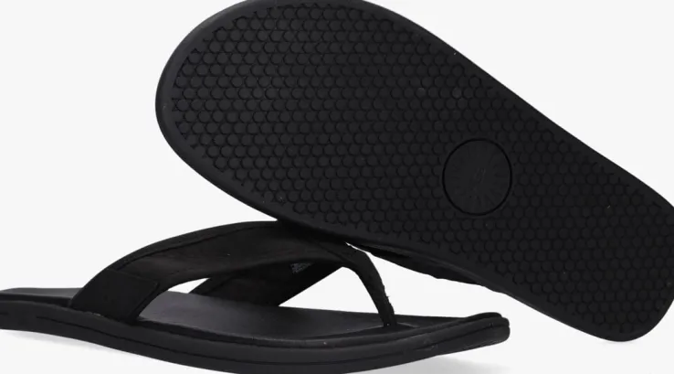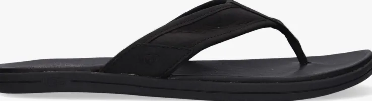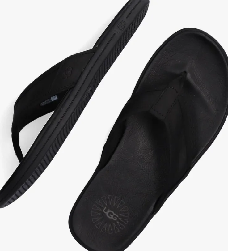 Dit is de M SEASIDE FLIPslipper uit de collectie van het merk UGG. Een zwarte, luxe teenslipper van hoogwaardig leermet een leren voering en een merklabel met reliëf opdruk aan de onderkant van de band. Dit model heeft een anatomisch gevormde rubberen voetbedvan EVA-schuim wat zorgt voor een fijne demping. De rubberen loopzool is voorzien van een gripvast profiel.Vakantie voor je voeten dus!