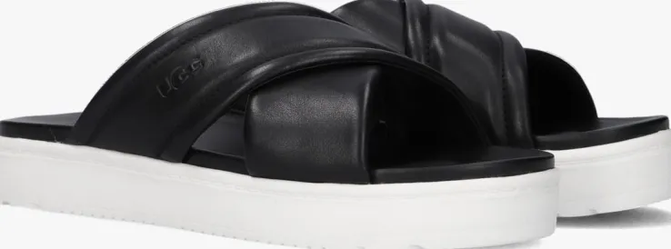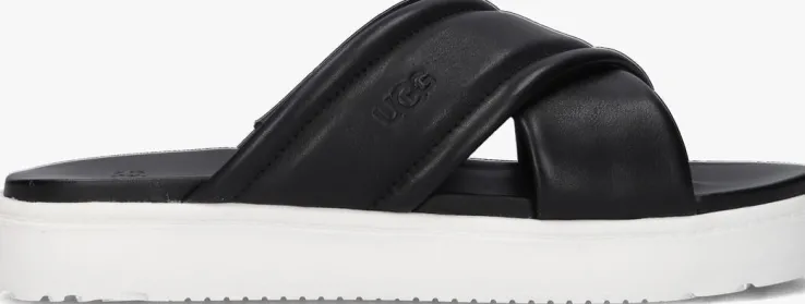 Dit is de W ZAYNE CROSSBAND slipper van het merk UGG. Een zwarte, comfortabele slipper met gekruiste banden van leeren een leren binnenwerk. Dit model heeft eeninlegzool van dempend geheugenschuimmet een laagje leer en een superflexibele, witte buitenzool met een gripvast, grof profiel. Draag ze onder je lievelingsjurkje of bij een 7/8 jeans en je bent ready to go!