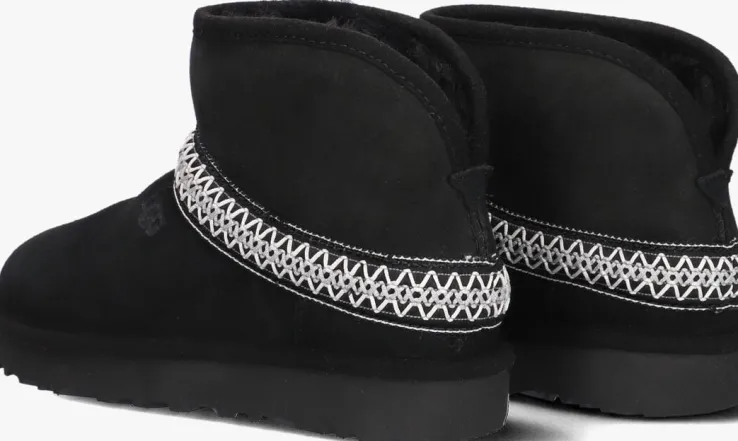 Stap stijlvol het najaar in met de CLASSIC MINI CRESCENT vachtlaarzen van UGG. Deze zwart kleurige laarzen zijn perfect voor een ontspannen wandeling in het park of een gezellige middag in de stad. De zachte vachtvoering houdt je voeten heerlijk warm, terwijl de stevige zool zorgt voor comfort en grip. Extra tof is de uitsnijding in de stof bij de hiel, het merkreliëf op het bovenwerk en de geborduurde rand rondom de schacht.