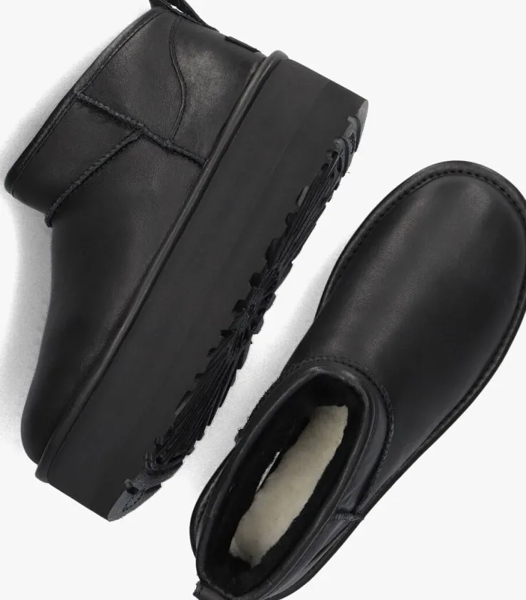 De W CLASSIC ULTRA MINI PLATFORMis een van de meest geliefde en legendarische modellen van het merk UGG!Dit zwarte model is gemaakt van leer en heeft een heerlijk zacht binnenwerk van UGGplush™materiaal, wat is gemaakt van 80% wol en20% plantaardig lyocell voor een extra zacht en duurzaam karakter. Het voetbed is niet uitneembaar.DeTreadlitebyUGG™ plateauzool van 6 centimeter geeft je nog meer lengte, comfort, demping en grip en is superlicht van gewicht. De hiel is voorzien van het welbekendesuède merklabel en aantreklus. De schacht heeft decoratieve opstaande naden.Deze veelzijdige laarsjeslaten zich gemakkelijk met vrijwel alles combineren. Probeer eens een losse boyfriend jeans met een fluwelen top of zelfs een zwierige maxi-jurk.