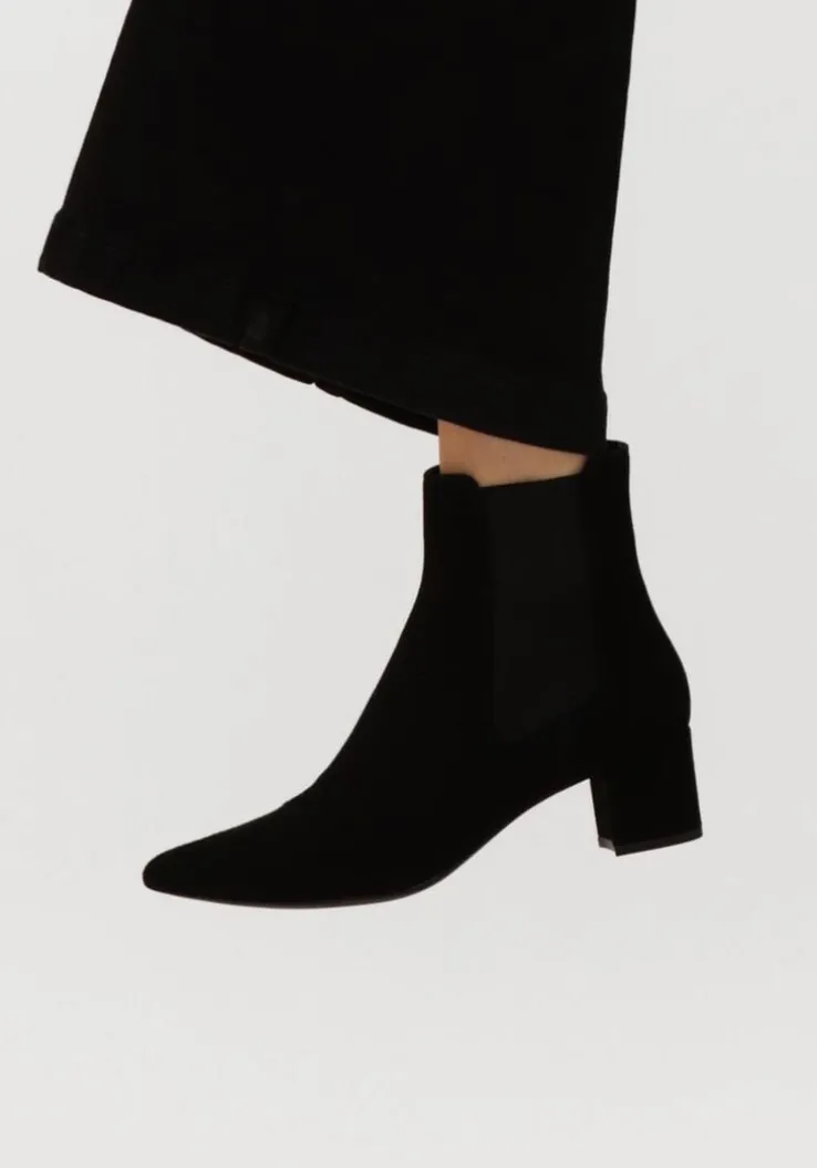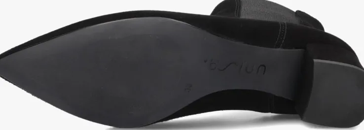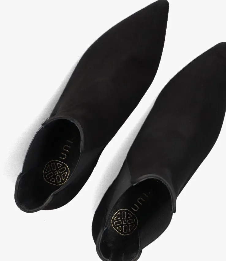 Stap stijlvol de dag in met de JURI enkellaarzen. Deze zwarte suède laarsjes met puntige neus en blokhak van 4 cm geven elke outfit een chique touch. De schachthoogte van 14 cm zorgt voor een elegante look, terwijl de rubberen zool comfort biedt. Perfect voor een dag op kantoor of een avondje uit. De leren binnenkant zorgt voor een luxe gevoel bij elke stap. Met de JURI enkellaarzen van UNISA ben je altijd klaar voor een modieuze verschijning.