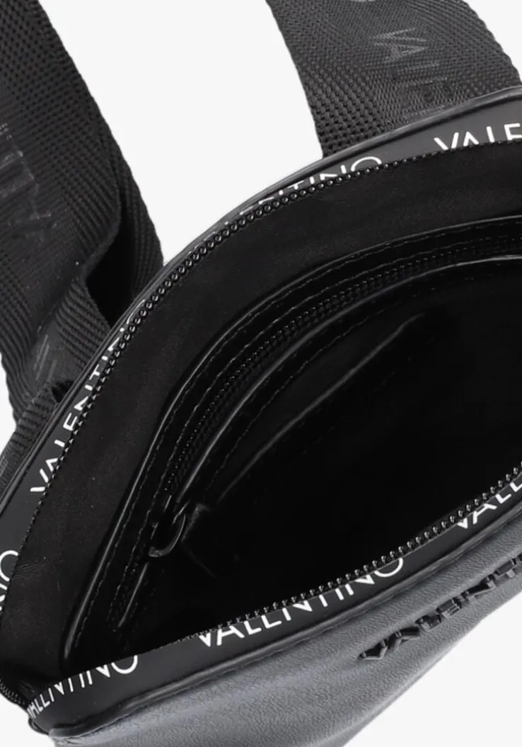 Deze praktische schoudertas VERMUT VBS5T705 met rubberen ritssluiting komt uit de collectie van het merk VALENTINOBAGS. Hij biedt ruimte voor al jouwessentialsen geeft jouw outfit de perfecte finishingtouch. Deze kleine zwarte reporterbag is uitgevoerd in soepel en glanzend lederlook materiaal met een zwart metalen merkembleem op de voorzijde, witte herhalende merkopdrukken op de ritssluiting en een rubberen ritshanger. De tas is gevoerd met zwart polyestertextiel en heeft nog een extra rits- en steekvakje in het hoofdvak. De brede schouderbandvan glanzend textiel heeft herhalende merkopdrukken en is verstelbaarop de gewenste lengte, zodat je de tas kunt dragen zoals jij wilt! Afmetingen: 17x 2x 21cm (lengte x breedte xhoogte)