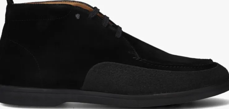 Uit de collectie van het Nederlandse merk Van Bommel is deze zwarte hoge veterschoenSBM-50027 met opstaande neusnaad en stootrand van gestructureerd rubber.Dezeveterschoen heeft een stijlvolle look met sportieve accenten zoals de dunne sneakerzool.De schoen is uitgevoerd in zachtsuèdemet een subtiel merkembleem aan de schacht en een klein aantreklusje van suède achter op de hiel. De flexibele rubberen zool heeft een comfortabele verdikking in de hak en merkreliëf achter op de hiel. Deze schoenmet bredereH-wijdteis gevoerd metleer enheeft een uitneembaarvoetbed met ventilerende perforatiegaatjes onder de voorvoet vooreen goed ademend vermogen van de voet en een prettig comfort. De loopzool is voorzien van een noppenprofiel voor enorm veel grip op iedere ondergrond. Combineer hem onder een stoere jeans voor een sportieve casual look.