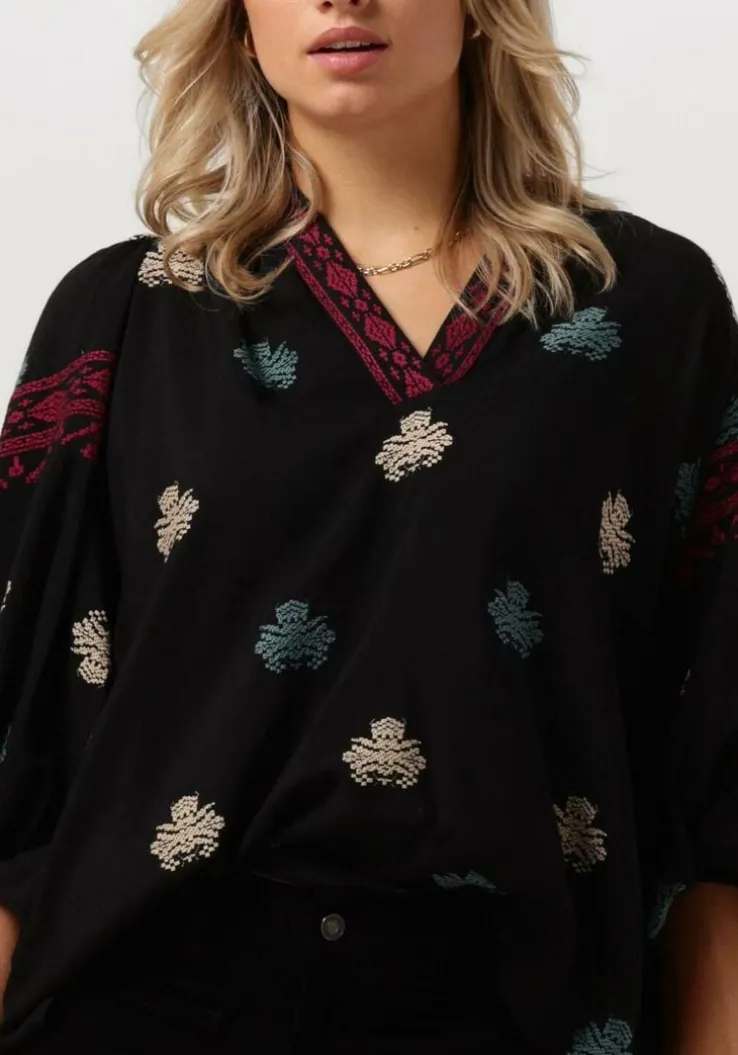 Ontdek deze BELL blouse van VANESSA BRUNO, een must-have voor dames die stijlvol en comfortabel willen zijn. Gemaakt van zacht katoen en modal in een tijdloze zwarte kleur, is deze blouse perfect voor elke gelegenheid. Extra leuk zijn de gekleurde patronen over het gehele bovenwerk. Combineer het met een elegante pantalon voor een chique kantoorlook, of draag het met een stoere jeans voor een trendy casual outfit. Met de BELL blouse straal je zelfvertrouwen en klasse uit. Voeg dit veelzijdige kledingstuk toe aan je garderobe en creëer eindeloze stijlvolle looks.