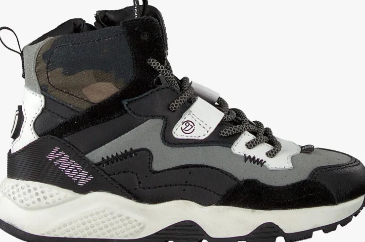 Deze hoge sneaker GIO MID komt uit de collectie van het merk VINGINO en ziet er onwijs stoer uit. De buitenkant is gemaakt van grijs suède in combinatie met zwart leer en suède en een textiel enkelkraag met legerprint. De witte leren details aan de veterklep en hiel vallen lekker op evenals de vele merkopdrukken die je terug vindt op de schoen. De tong is gesierd met een rubberen merkpatch en een textiel lint met wit merkopdruk. Zowel de tong als de hiel zijn voorzien van een textiel aantreklus. Voor nog meer gemak tijdens het aan- en uittrekken is dit model ook nog voorzien van een ritssluiting. De voering is gemaakt van lederlook in combinatie met textiel en heeft een uitneembaar voetbed. De rubberen witte zool met zwarte accenten en loopzool heeft speelse,golvende vormen en een gripvast profiel.
