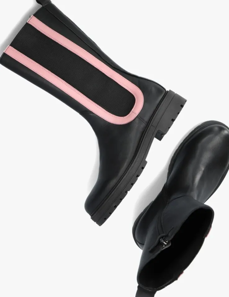 Hétnieuweschoenenmerkvoor coole kids, WYSH, staat voorWearYourSHoesen is vooreigenwijze types diehuneigenstijl volgen.Oftewel, doe je ding! Draagopieder momentde schoenen die jij wilt, op iedere manier diejijtofvindt.De trendy modellen zijn uitgevoerd in hoogwaardige materialen en zijn met zorg ontworpen voor snel groeiende voeten. Deze hoge chelsea boot ROSIE is uitgevoerd in zwart leer met een leren voering en een uitneembaar voetbed. Een tof detail is de roze, leren rand rondom de elastiek die de schoen een unieke en speelse uitstraling geeft. De schacht is voorzien van een aantreklusje en een handige ritssluiting. De rubberen zool met grof profiel zorgt voor veel stabiliteit en grip bij iedere stap.